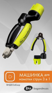 Машинка для намотки струн. Объемная ручка с удобным хватом легко лежит в руке благодаря качественной пластмассе с каучуковой накладкой. Механизм подходит для колков классической, акустической, электрогитары и укулеле. Ускоренное натяжение струн делает процесс замены быстрым и безболезненным для пальцев.
